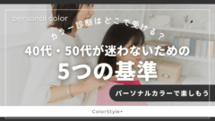パーソナルカラー診断・骨格診断・顔タイプ診断・美顔バランス診断を通して、「なんかしっくりこない」悩みを解消し、大人のメイクとファッションを心地よく整えるお手伝いをしています。