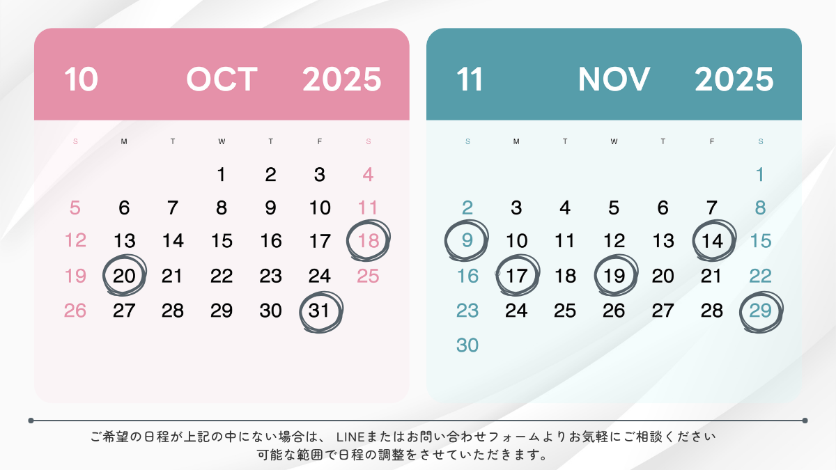 【10月・11月】ご予約可能日のお知らせ